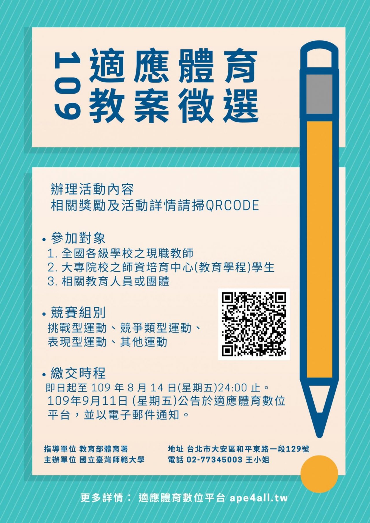 1、全國各級學校具熱忱且有意願之現職特殊教育領域教 師、體育領域教師、代理教師及實習教師。