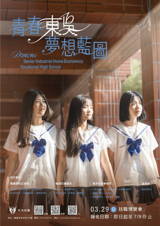 四、本活動為免費參加,有意參與的家長及學生,可由「東吳高職資訊網-線上報名系統」、東吳高職社群(FB 、 IG)或直接來電報名 05-2246161 。