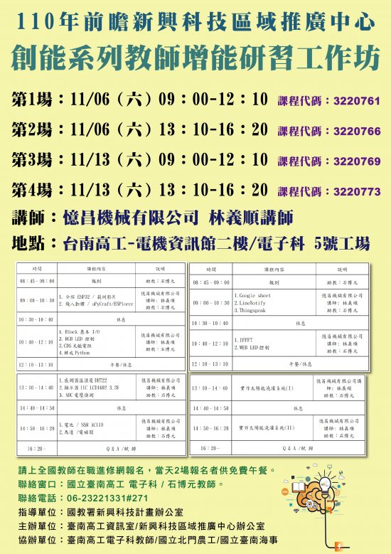 研習日期: (一)110 年 11 月 06 日(星期六) 09:00~16:20 (二)110 年 11 月 13 日(星期六) 09:00~16:20 詳情請參考附件