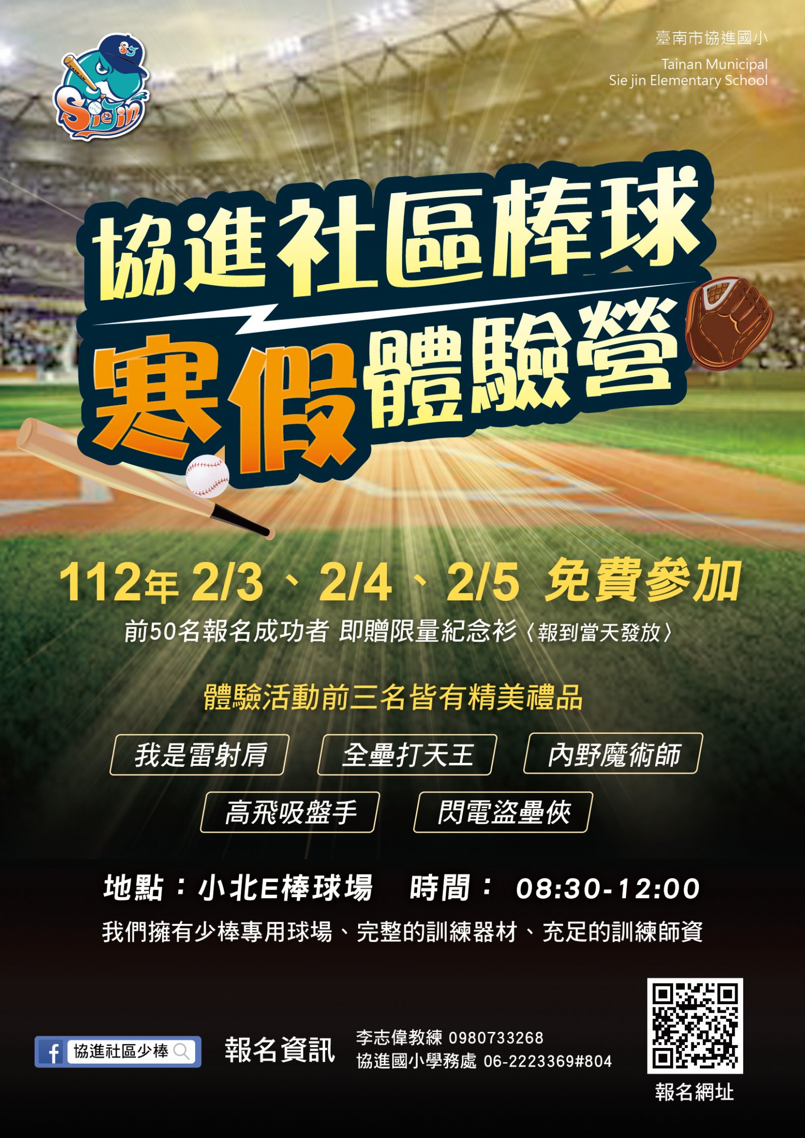 三、本案倘有需詢事項請逕洽承辦學校協進國小劉澔澤教練,聯絡電話:06-2223369分機804。