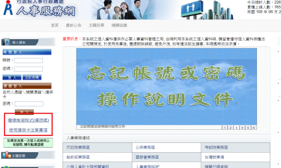 ◦請先以IE登入人事服務網(https://ecpa.dgpa.gov.tw/)並進行環境檢測變更設定
