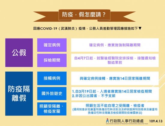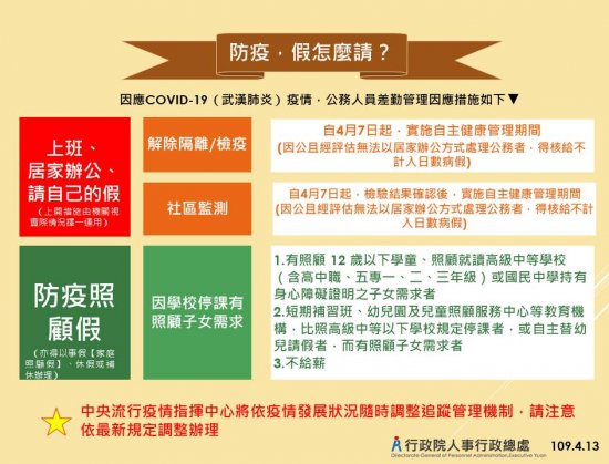 轉知 人事行政總處公告之因應COVID-1(武漢肺炎)疫情公務人員差勤管理因應措施,請同仁參閱