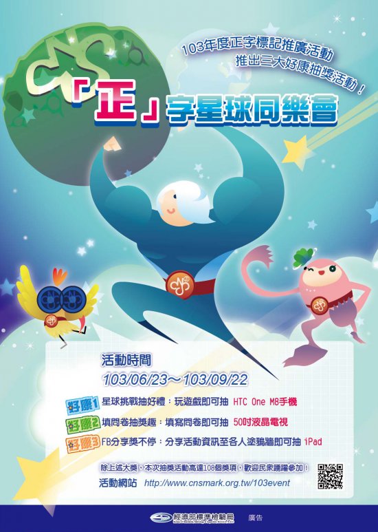 為強化民眾對正字標記形象之認知及信賴,並宣導正字標記產品之品質保證及公信力,經濟部標準檢驗局刻正辦理旨揭活動,相關活動資訊請參閱附件或上正字標記推廣宣導網站(http://www.cnsmark.org.tw)查詢。