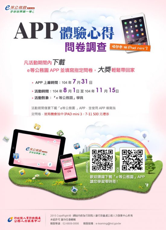 轉知行政院人事行政總處公務人力發展中心創新開發建置「e等公務園」行動學習APP