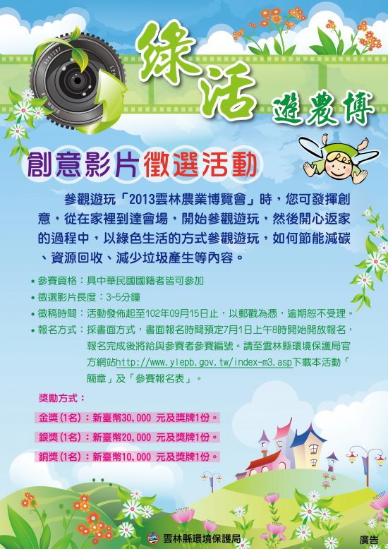 轉知「2013雲林縣農業博覽會-綠色遊農博」創意影片競賽活動(9/15)