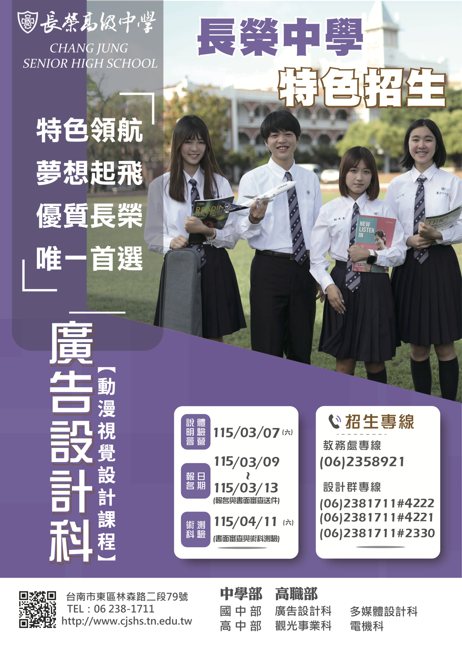 (一) 活動日期: 115 年 3 月 7 日(六)。(二) 活動地點:臺南市私立長榮高級中學。