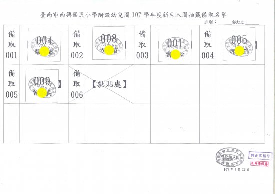 107學年度南興國民小學附設幼兒園新生備取名單
