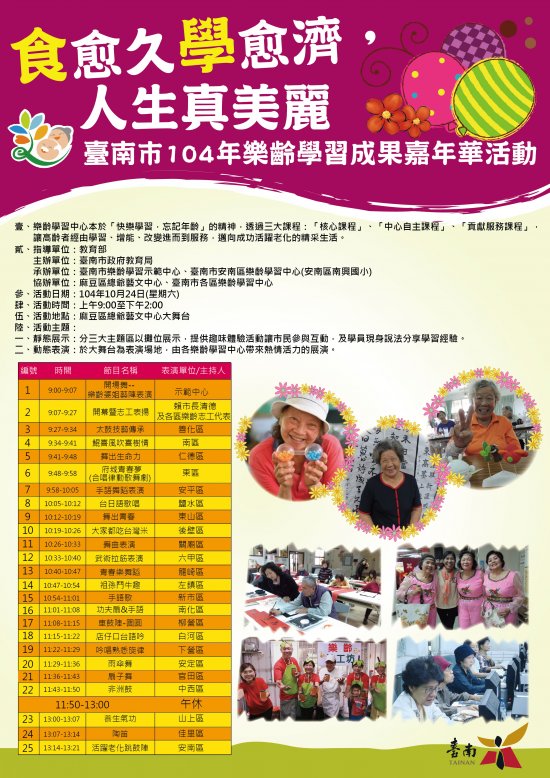 台南市104年樂齡學習成果嘉年華活動--食愈久學愈濟,人生真美麗