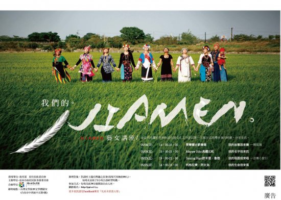 「NIAMEN藝文講座」宣傳海報電子檔各乙份,相關報名資訊及活動內容請見「札哈木部落大學」Facebook臉書粉絲專頁(網址:https://www.facebook.com/tn.cahamu?fref=tshttp://cahamu.com.tw/)或札哈木部落大學官網(http://cahamu.com.tw/)。