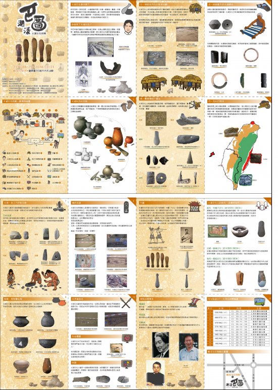 一、目的:旨揭活動以展示新石器時代晚期之「大湖文化」為主題,透過考古發掘成果,呈顯臺灣西南部平原先民履跡與生活樣貌,並規劃互動遊戲與教育活動,以增加民眾對史前人類生活的了解達到教育推廣目的。 二、展覽日期: 103 年 4 月 29 日至 103 年 10 月 31 日止。 三、展覽地點:臺南市鄭成功文物館 1 樓(臺南市中西區開山路 152 號)。 四、檢附展覽摺頁與特展新聞稿供參,如需安排導覽,請洽 06-2136207 曾小姐。