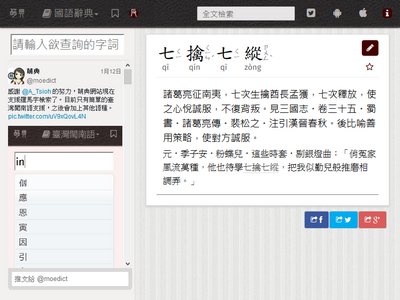 共收錄十六萬筆國語、兩萬筆臺語、一萬四千筆客語條目,每個字詞都可以輕按連到說明,並提...