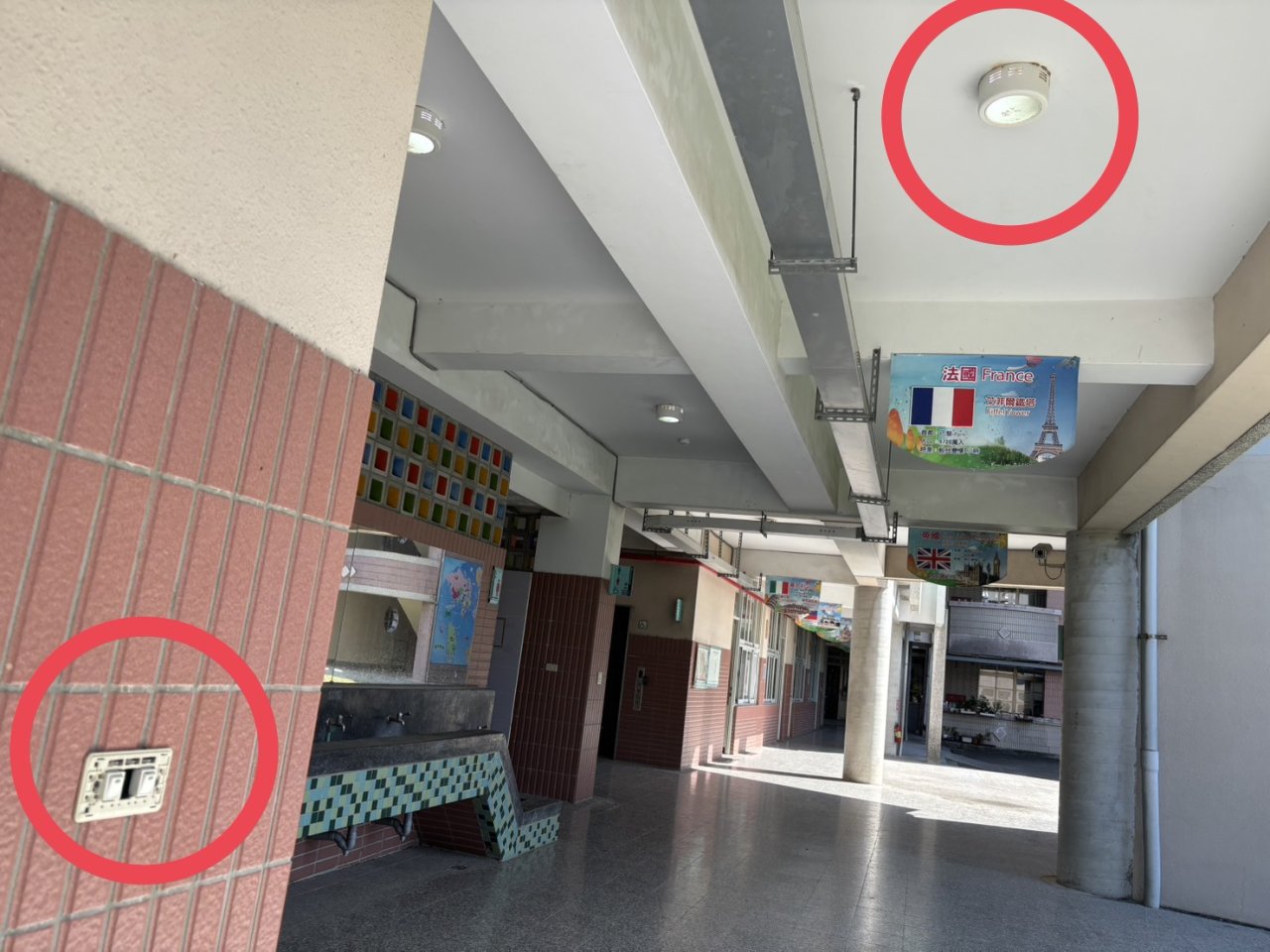 電燈開關裝反,往上按是官,往下按開,且亮燈提示不符。所以常會沒察覺白天廁所走廊也亮著燈! 無開關外殼! |