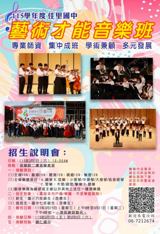 一、依據藝術教育法及高級中等以下學校藝術才能班設立標準暨教育局 115 年 1 月 23 日南市教特(二)字第 1150163905 號函核定。