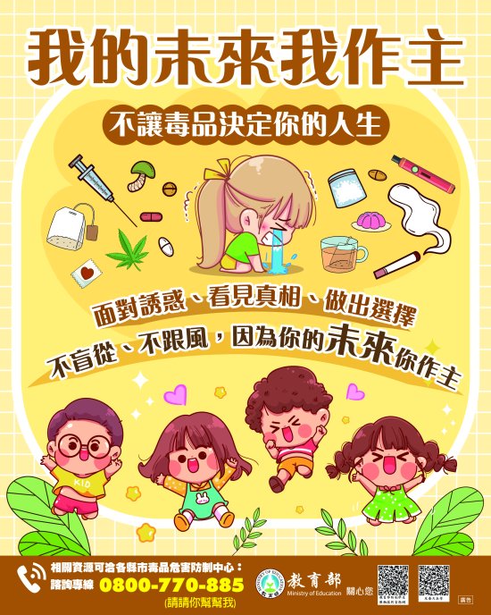 二、教育部防制學生藥物濫用資源網( https://enc.moe.edu.tw/home )/反毒知識/下載專區/文宣品,請逕行下載運用