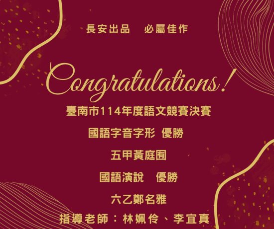 狂賀!狂賀!本校參加臺南市 114 年度語文競賽決賽榮獲佳績!
