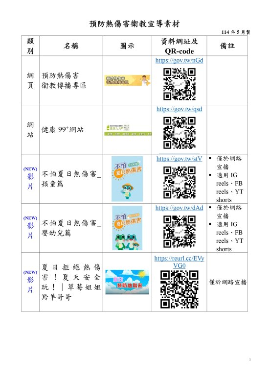 二、衛生福利部考量近年受氣候變遷影響全球氣溫偏高,若無適當防護措施任何人都有可能發生熱傷害,爰提供旨揭預防熱傷害衛教宣導素材,以強化高溫熱傷害整備防救能力及易受傷害族群之多元關懷措施與管道。