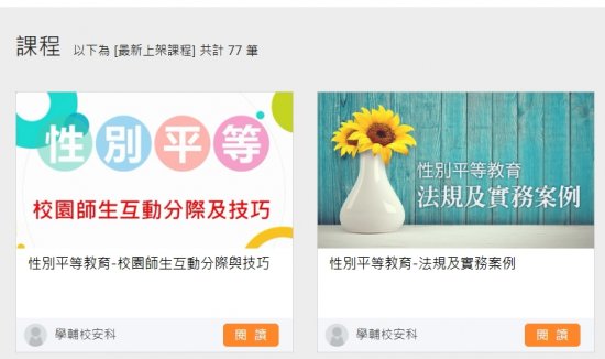 登入後請選讀「性別平等教育—法規及實務案例」及「性別平等教育—校園師生互動分際與技巧」