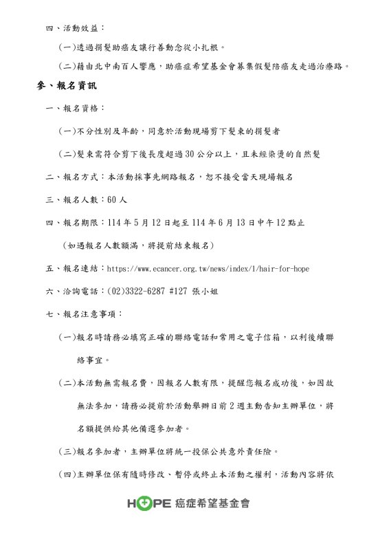 六、主辦單位:財團法人癌症希望基金會