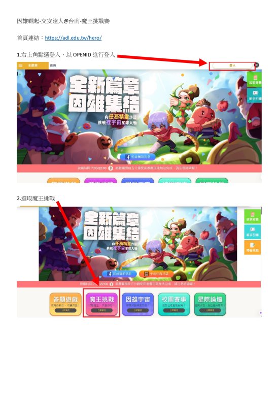 二、為提升學生交通安全教育學習興趣並檢視成效,請各校鼓勵學生踴躍至因材網─因雄崛起平臺( https://adl.edu.tw/hero/)參加「交安達人@TAINAN」魔王挑戰關卡。