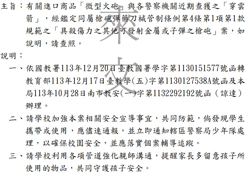 「微型火砲」與「穿雲箭」經鑑定同屬槍砲彈藥刀械管制條例第4條第1項第1款規範之「具殺傷力之其他可發射金屬或子彈之槍砲」
