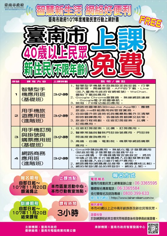 一、本活動報名期程:自即日起至107年11月20日額滿為止。訓練期程:自即日起至107年11月20日。
