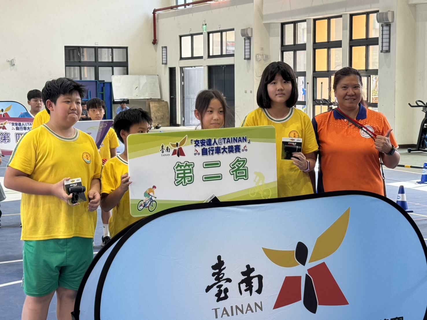 賀! 本校六年級學生黃琪恩、黃薆橙、陳俐方、陳家駿,榮獲臺南市 114 年度「交安達人@TAINAN」自行車大獎賽國小組第二名!