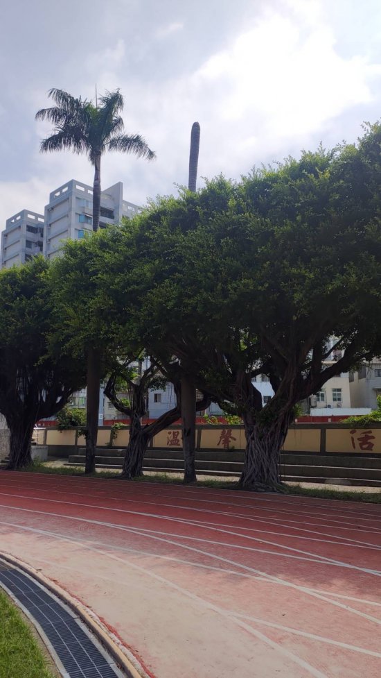 - 本校成功國中司令台南側一排大王椰子,往南數第 2 棵現況頂芽腐朽斷落。