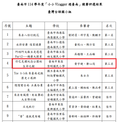 狂賀!本校學生參加臺南市114學年度「小小Vlogger遊臺南」競賽榮獲臺灣臺語國小組第三名