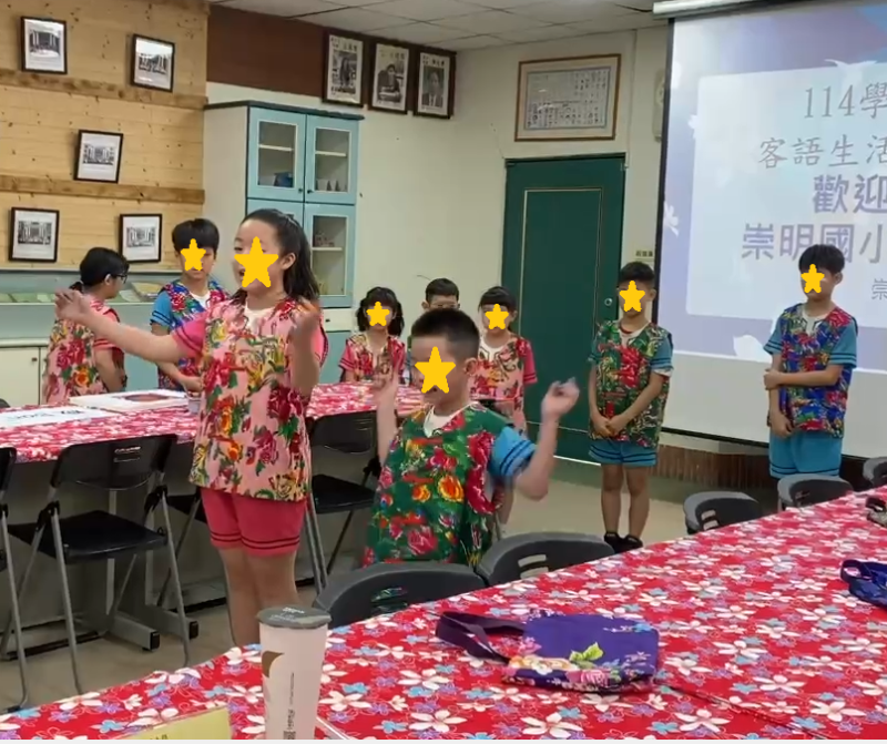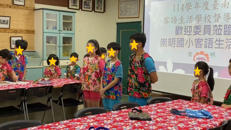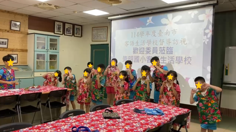 學生朗誦客語童謠並且介紹客家米食「粄」。