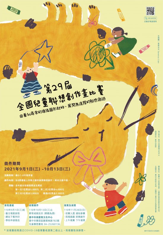 轉知:臺中市政府文化局「第29屆全國兒童聯想創作畫比賽」活動訊息,請查照。