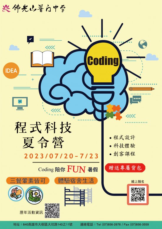 主旨:本校將於 112 年 7 月 20 日(四)~7 月 23 日(日)舉辦程式科技夏令營,敬請惠予公告,並鼓勵貴校同學踴躍報名參加。