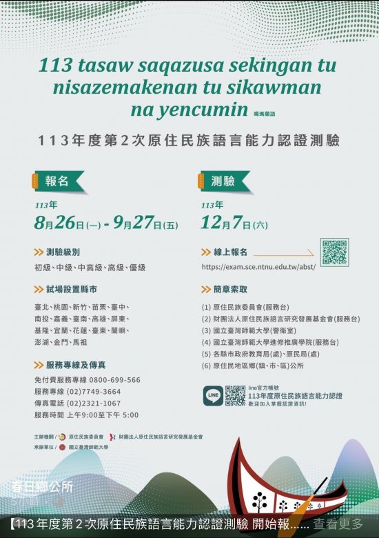 二、簡章及相關測驗資訊可至 113 年度第 2 次原住民族語言能力認證測驗網站查詢下載( https://exam.sce.ntnu.edu.tw/abst/ ),
