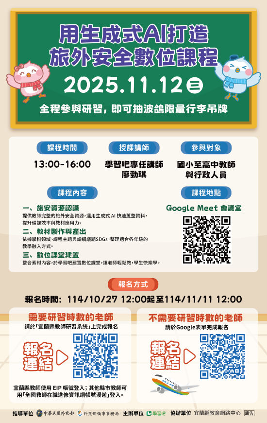 轉知「用生成式 AI 打造旅外安全數位課程」線上研習 (管理員)