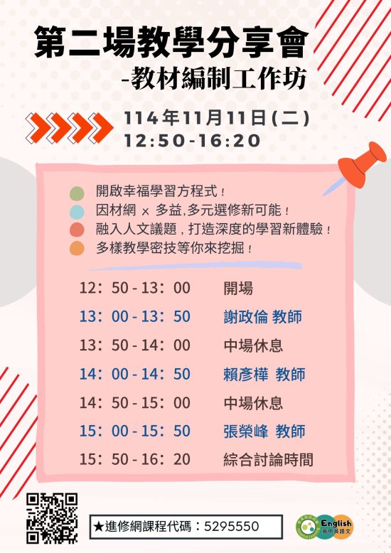 「因材網輔導團第二場教學分享會-教材編製工作坊」之研習資訊 (管理員)