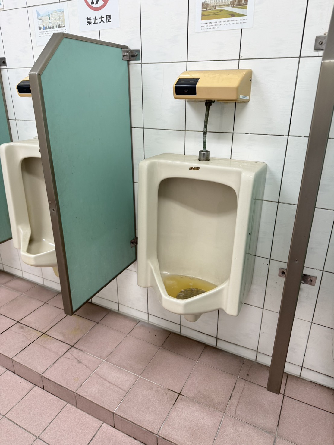 行政大樓 二樓 北側廁所 (男廁) 第二個小便斗塞住,尿液留不下去