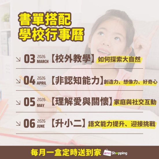 二、「My Reading Box」每月提供 2 本童書與 2 張閱讀紀錄小卡,依據校園主題規劃主題閱讀內容,為期 12 個月,共計 24 本書籍。內容涵蓋: