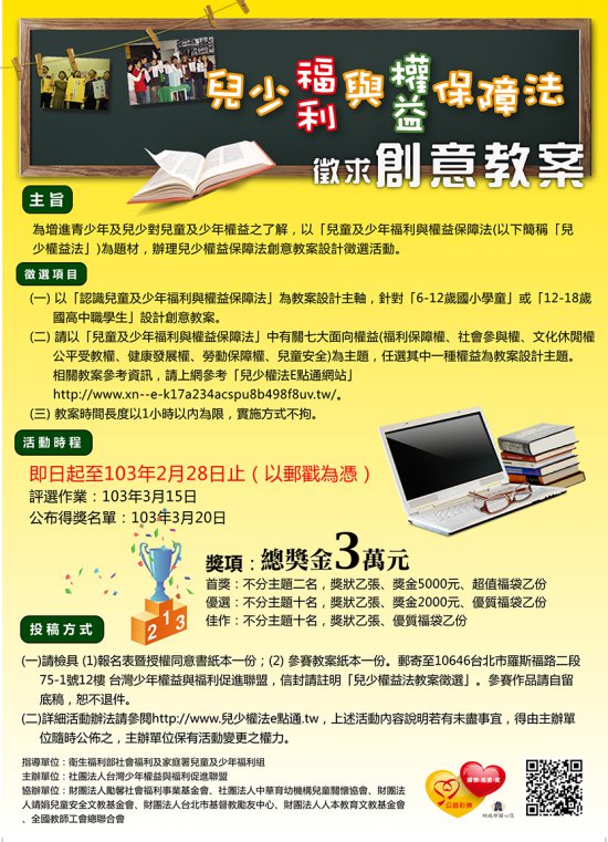 一、依據社團法人台灣少年權益與福利促進聯盟 103 年 2 月 12 日台少盟字第 1030000005 號函辦理。