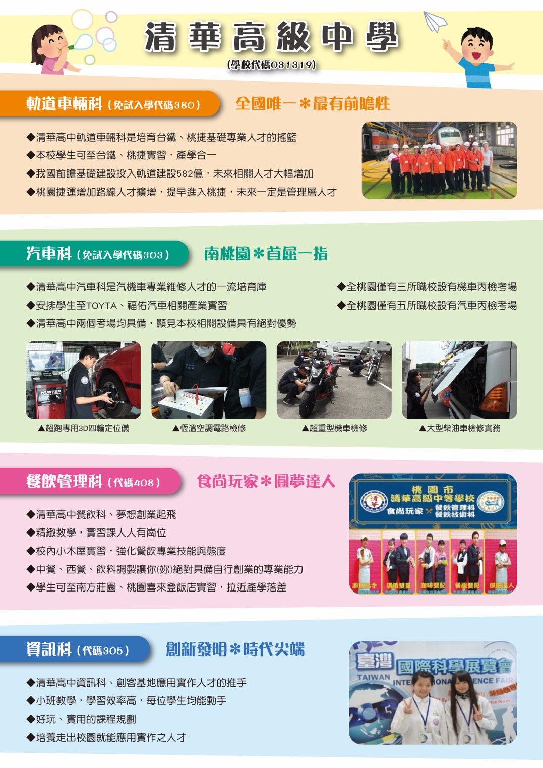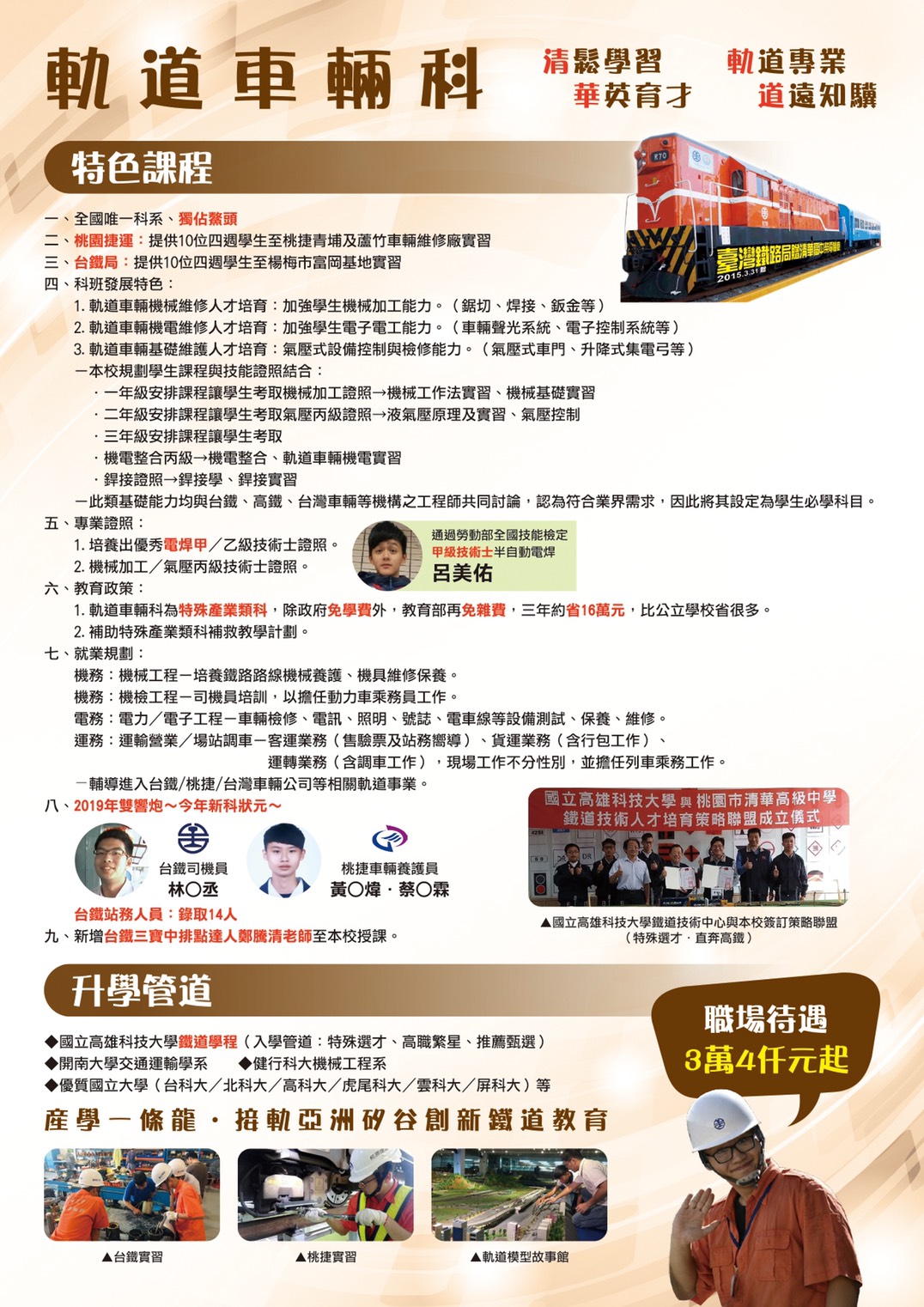 二、國內唯一,培養軌道專業人才的學校,培育維修、保養、營運等軌道專業人員,有志從事相關職業的學生,清華高中將是最佳的選擇。