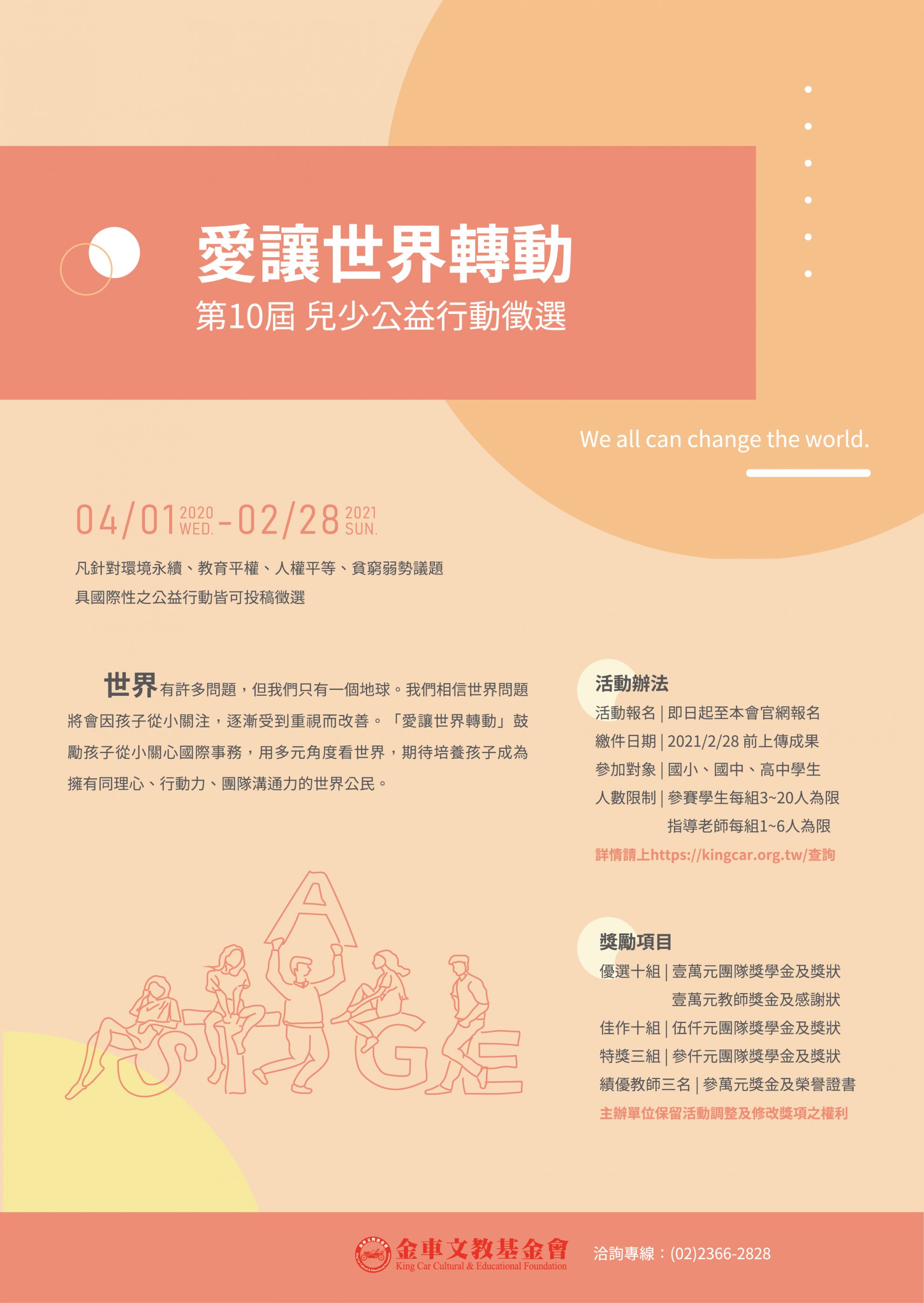 二、「愛讓世界轉動 兒少公益行動」徵選資訊