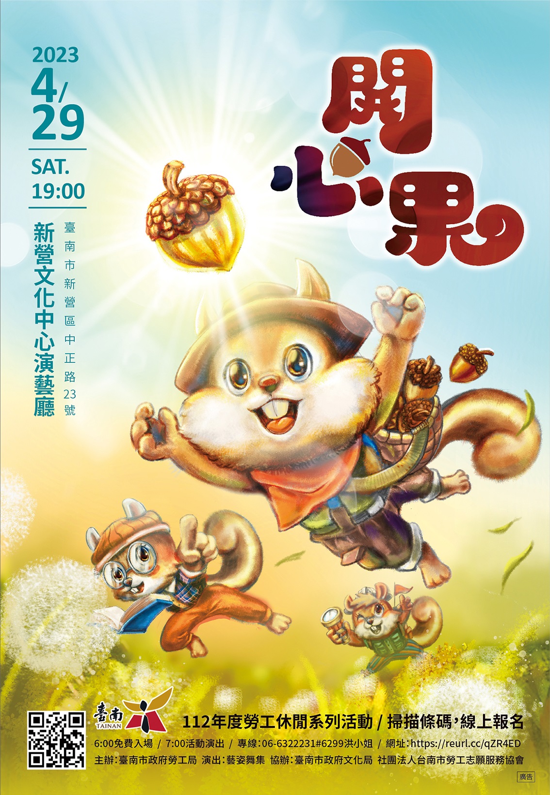 為紓解勞工工作壓力,提升生活品質,特辦理 112 年度勞工休閒系列活動-兒童舞劇「開心果」,請踴躍報名參加。