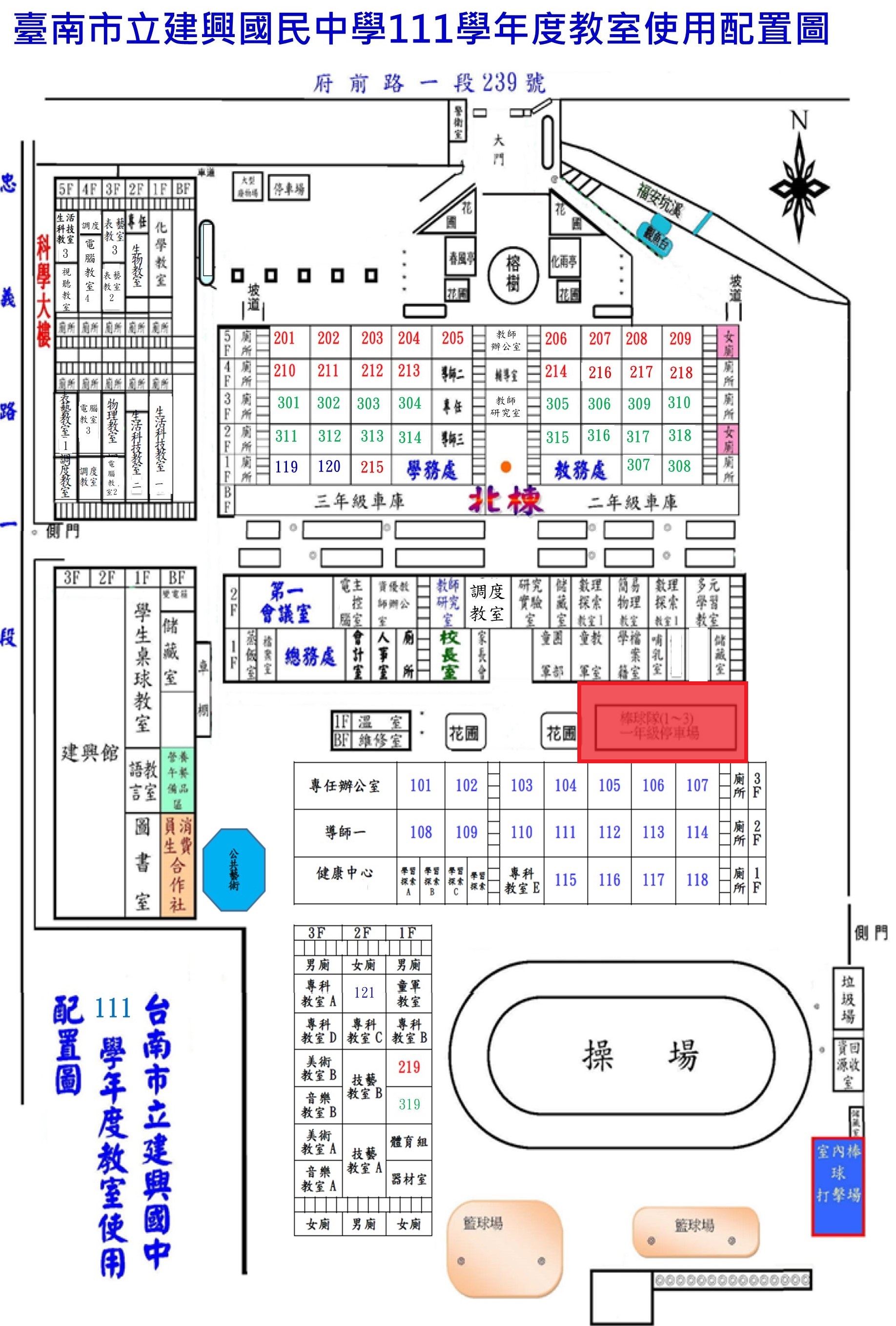 教室使用配置圖的紅色處,自下週一(5/1)起,作為紅樓修復的工務所,不開放通行與使用。