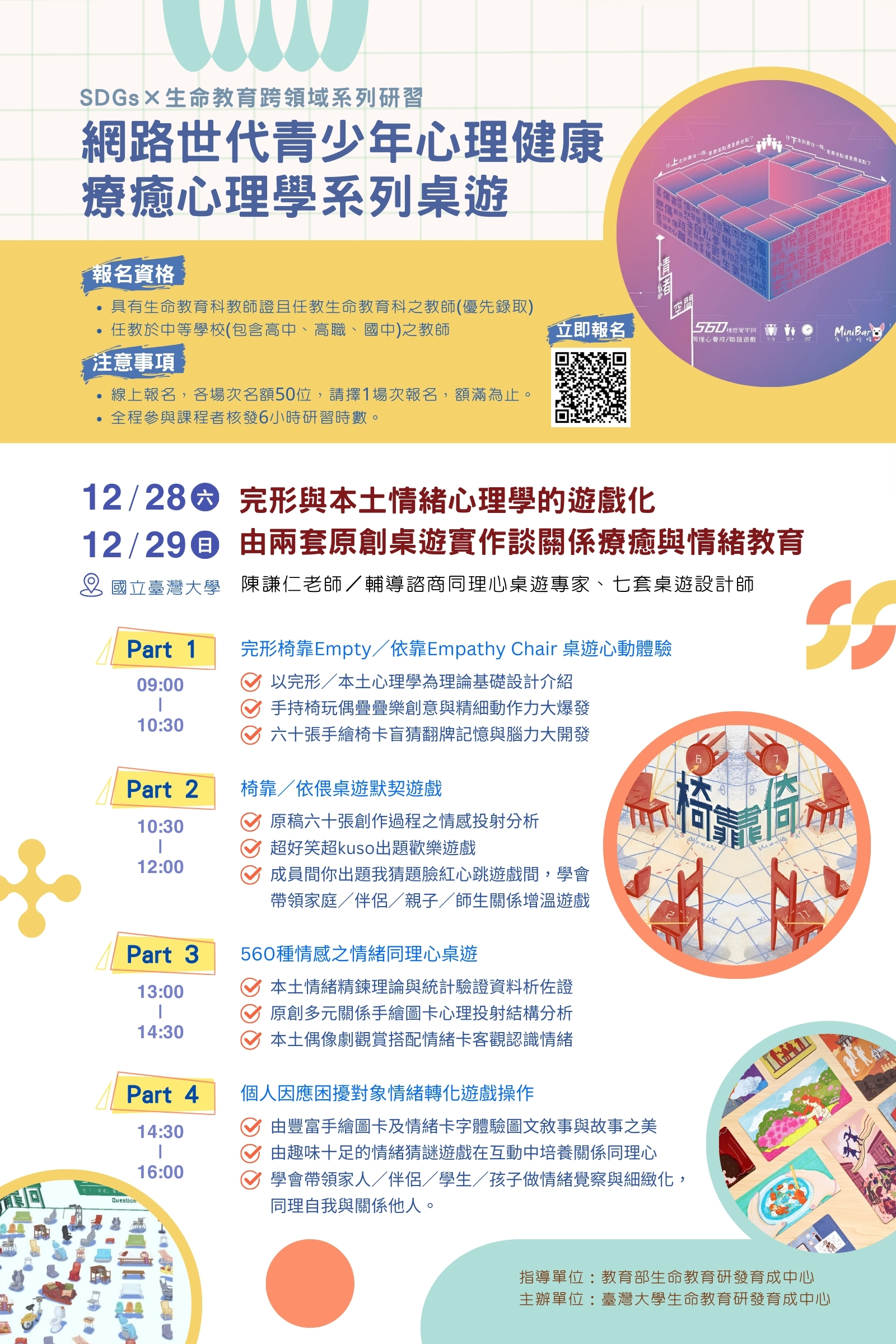 臺灣大學生命教育研發育成中心辦理「網路世代青少年心理健康之療癒心理學系列桌遊」