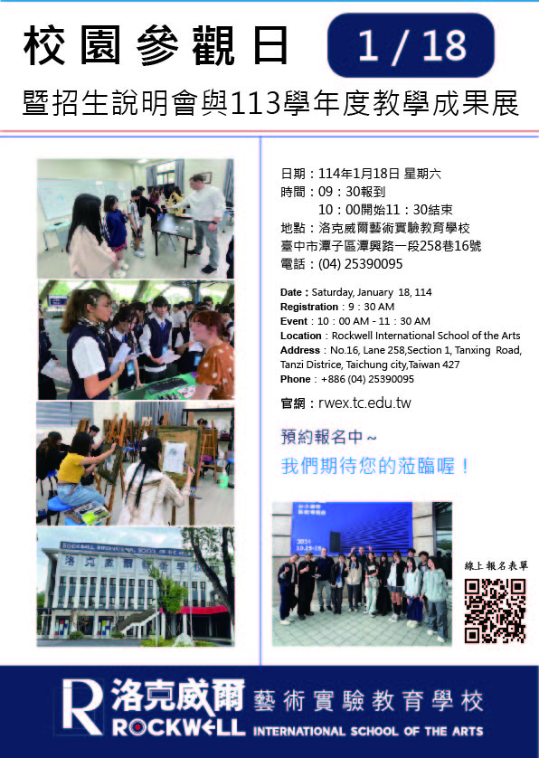 轉知臺中市私立洛克威爾藝術實驗教育學校「114 學年度校園參觀暨招生說明會」招生海報 1 份