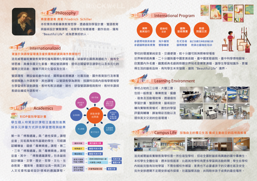 二、本校為「學校型態」實驗高中,秉持席勒審美教育哲學,透過個別學習計畫及藝術設計導向實驗教育模式,營造雙語的住宿學習環境,勾勒出美力、品格力及國際移動力的學生圖像。