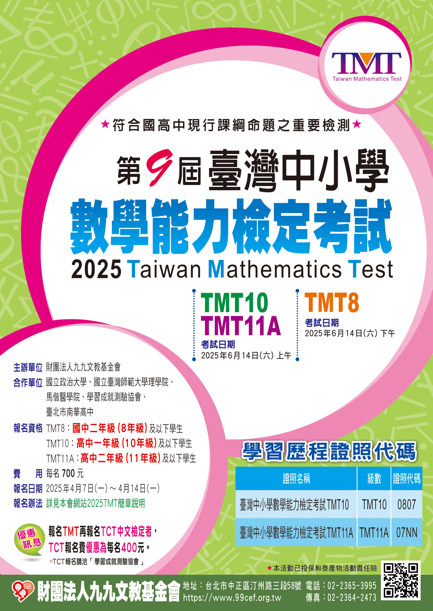 (三)TMT11A :全國 11 年級 (高中二年級)以下(含)在學學生