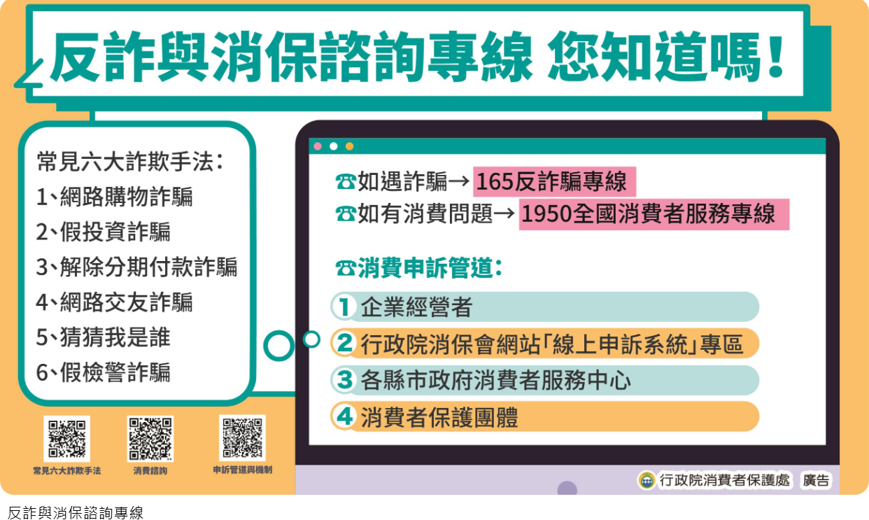 相關消費者保護教育宣導素材,敬請至行政院消費者保護會網站(https://cpc.ey.gov.tw/ 圖卡資訊下載運用