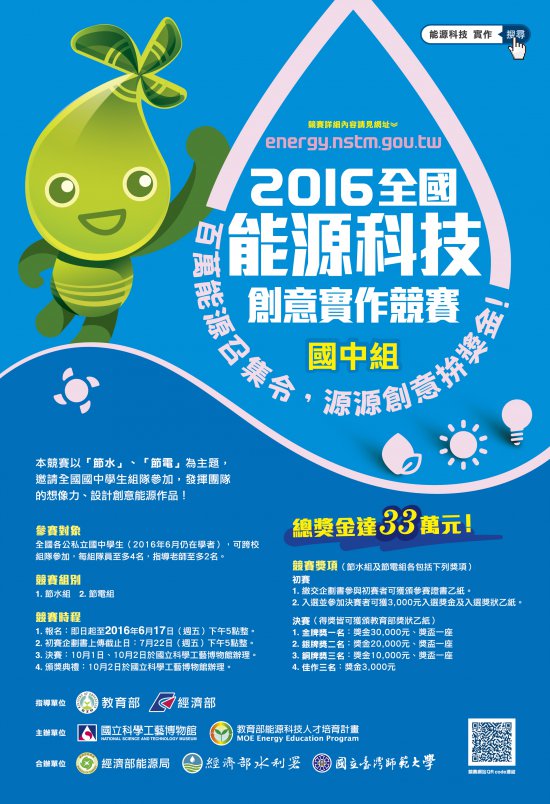 三、本競賽限網路報名,報名時間即日起至 105 年 6 月 17 日(週五)下午 5 時止,詳細競賽資訊請見網頁 http://energy.nstm