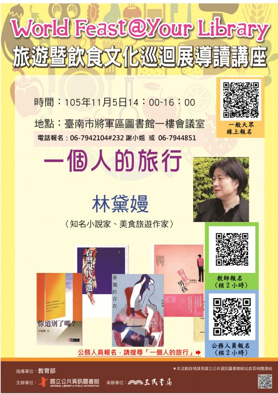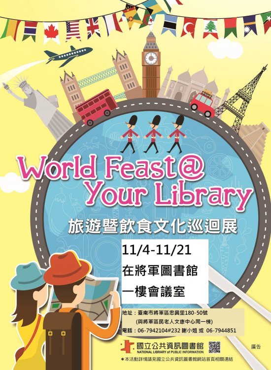 主旨:檢送將軍區圖書館辦理國立公共資訊圖書館「從圖書館看世界---旅遊暨飲食文化巡迴展」文宣兩份,請查照。