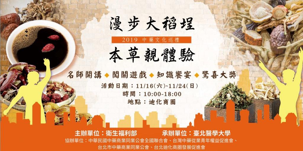 (一)11 月 16 日(星期六):辦理名師開講、有獎徵答、藥膳養身飲及中藥蔬果汁試喝、中藥相關趣味闖關等活動。