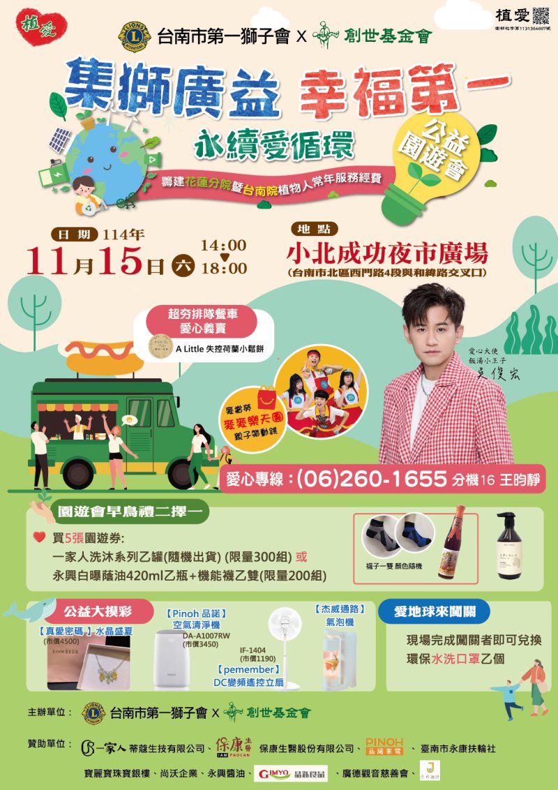 創世基金會 11/15(六)於小北成功夜市舉辦愛心園遊會暨闖關活動,若有興趣可自由參加
